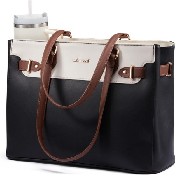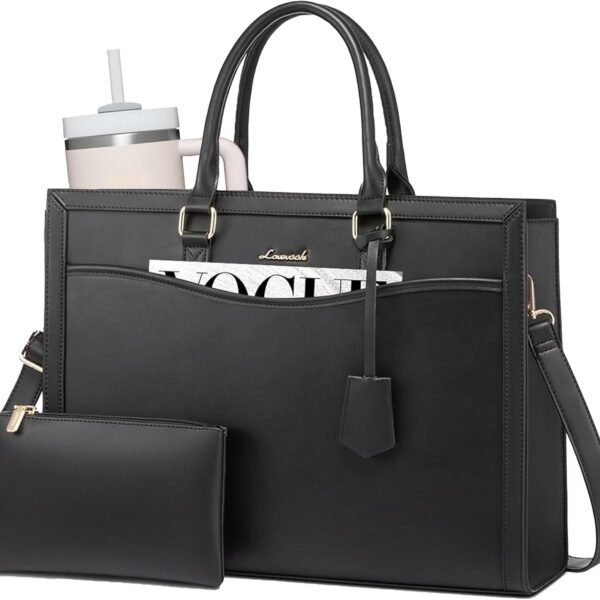 LOVEVOOK Laptop Tote Bag for Women Work, Teacher Tote Bag with Large Cup Holder, 15.6 Inch Waterproof Leather Computer Bag
