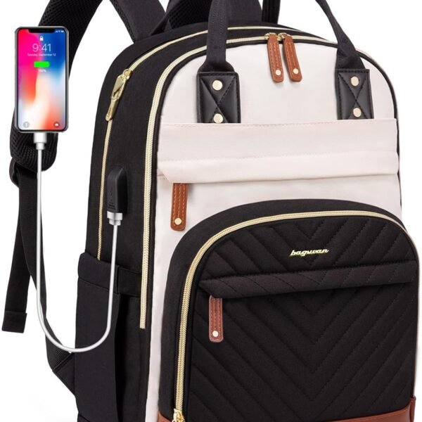 Laptop Backpack for Women Bag – 15.6 inch Work Travel Backpack with USB Charger College Bookbag Waterproof Business Computer Backpack Anti-theft Casual Backpacks for Nurse Teacher Beige Black Brown