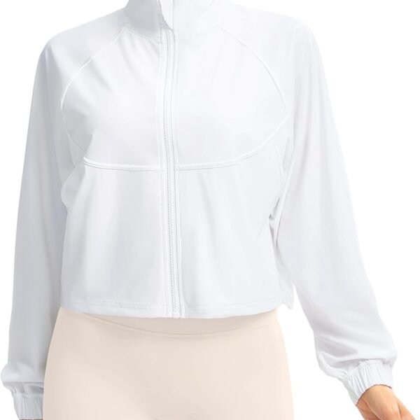 Women’s Athletic Workout Jacket Lightweight UPF 50+ Long Sleeve Sun Protection Shirts Zip Up Cropped Sun Jacket Hiking Tops