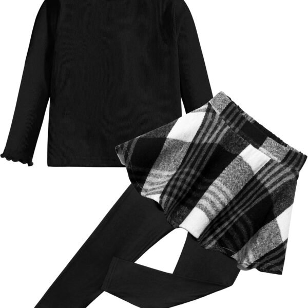 Little Girls Clothes 2Pcs Long Sleeve Solid Knit Shirts and Plaid Skirt Leggings Pants Set Fall Winter Outfit 3-7Y
