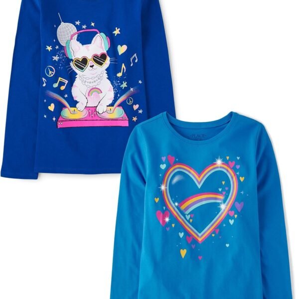 The Children’s Place Girls Unicorns,Sports,Butterflies Long Sleeve Graphic T-Shirts,2 Pack