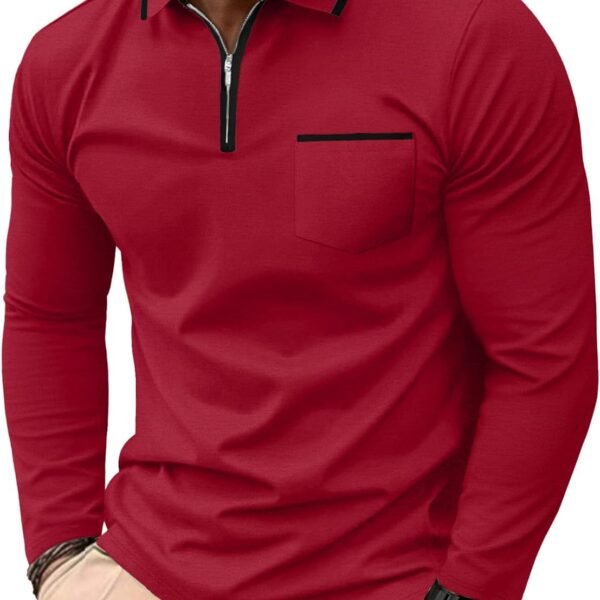Askdeer Men’s Polo Shirts Zip Long Sleeve Classic T-Shirts Casual Golf Shirts Stylish Collared Tee