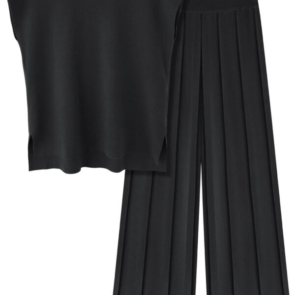 Ekouaer Lounge Sets for Women Two Piece Outfits Knit Cap Sleeve Tops Wide Leg Pleated Pants Casual Dressy Sweater Sets