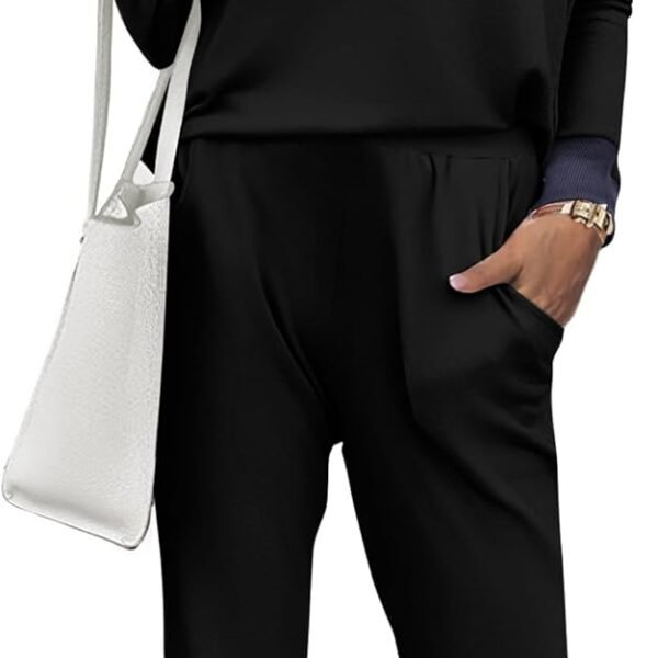 ETCYY NEW Womens 2 Piece Outfits Sweater Lounge Set Casual V Neck Knit Pajama Set Long Sleeve Top Wide Leg Pants Loungewear