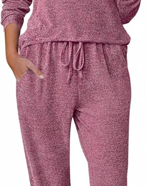 Ekouaer Pajamas Set Long Sleeve Pj Sets 2 Piece Jogger Pajama Sets Soft Sleepwear Loungewear for Women