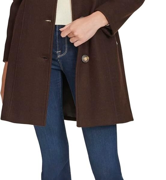 Calvin Klein womens Faux Wool Coat – Long Button Front Dress Coat With Stand Collar
