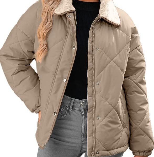 Dokotoo Women’s Winter Casual Quilted Jackets Long Sleeve Button Down Puffer Jacket Padded Outerwear Coats
