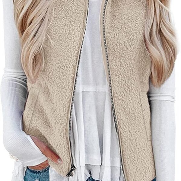LOMON Womens Fuzzy Sherpa Fleece Jacket Lightweight Vest Cozy Sleeveless Cardigan Zipper Waistcoat Outerwear with Pocket