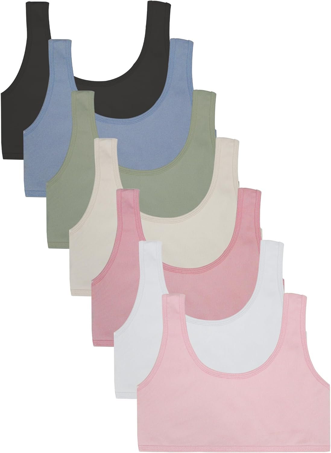 7 Packs Girls Sports Bra Crop Tops for Kids Training Bra Cute Crop Tops for Girls Cami Bra 8-14 Years