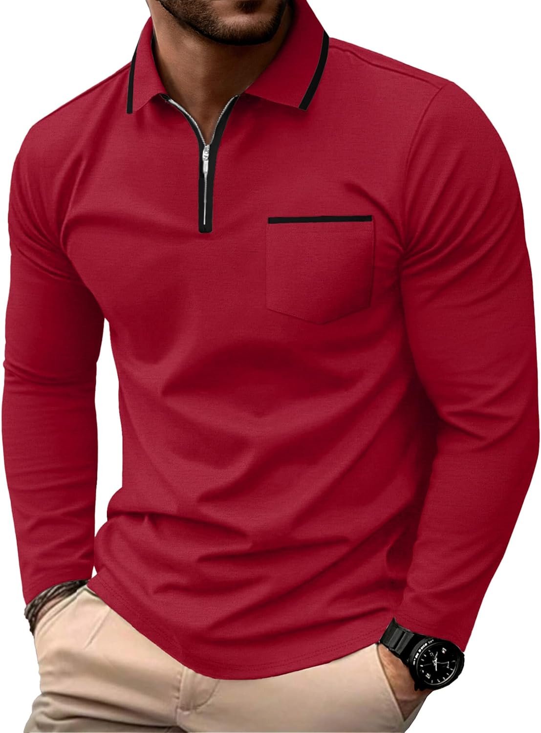 Askdeer Men’s Polo Shirts Zip Long Sleeve Classic T-Shirts Casual Golf Shirts Stylish Collared Tee