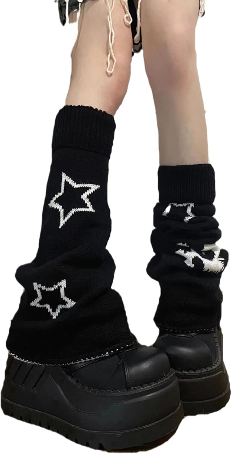 BXCNCKD Gothic Skull Print Two Side Wear Knitted Leg Warmers Socks Y2k Star Punk Girls Japanese Kawaii Streetwear Leg Cover