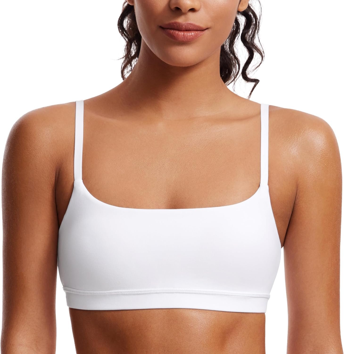 CRZ YOGA Butterluxe Adjustable Spaghetti Strap Sports Bras for Women – Scoop Neck Wireless Padded Yoga Workout Crop Top
