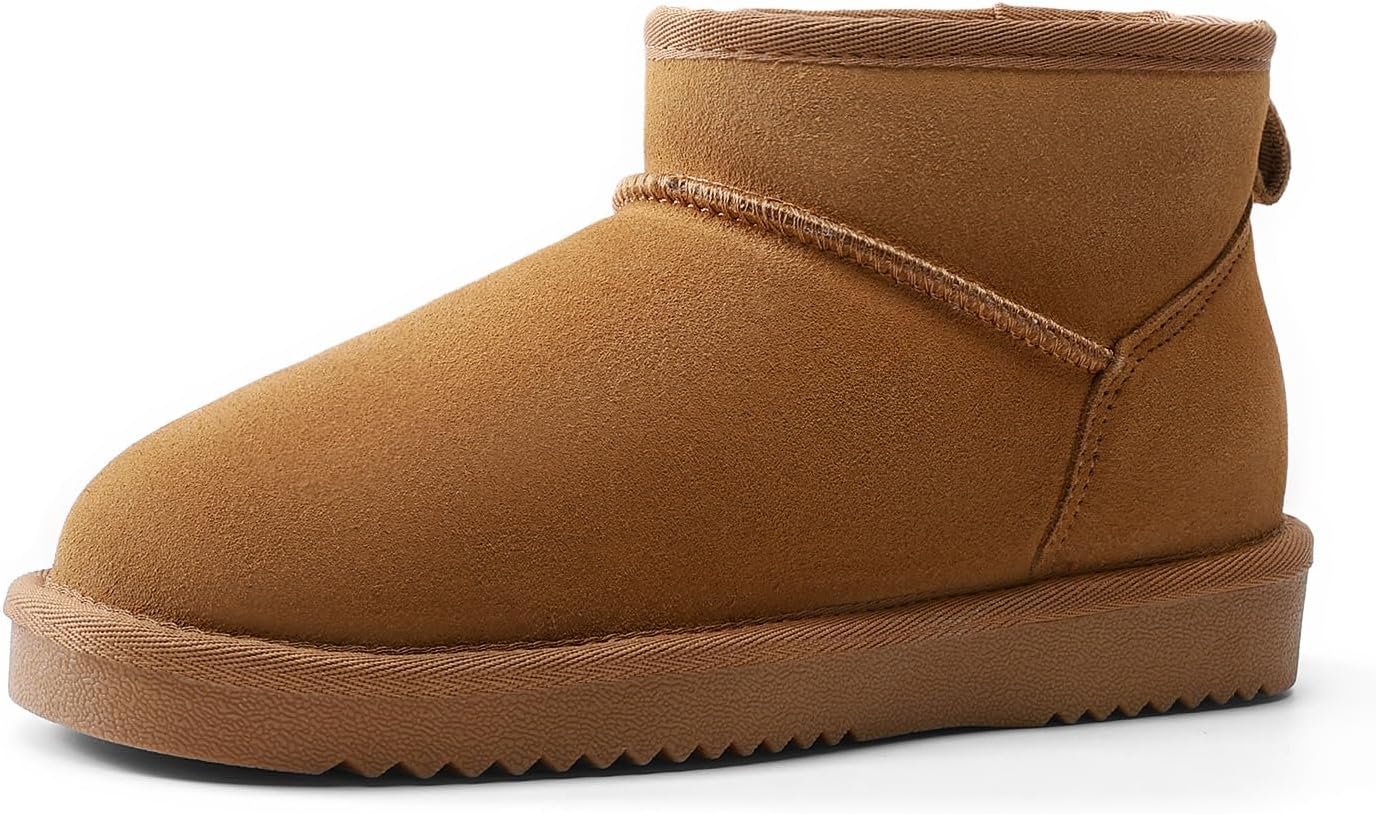 DREAM PAIRS Genuine Suede Ankle Winter Mini Boots for Women Slip On Faux Fur Lining Water Resistant Warm Snow Boots Memory Foam Comfort Booties