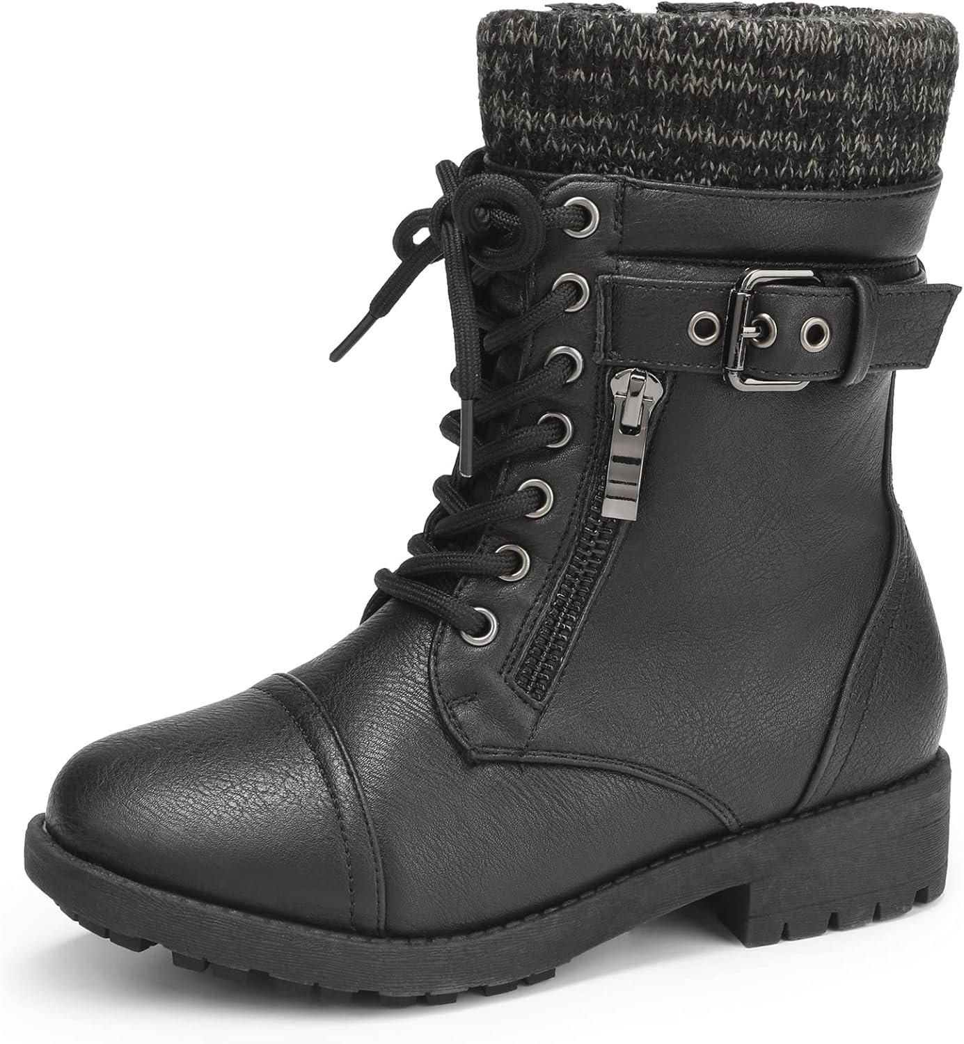 DREAM PAIRS Girl’s Mid Calf Combat Ankle Lace up Boots