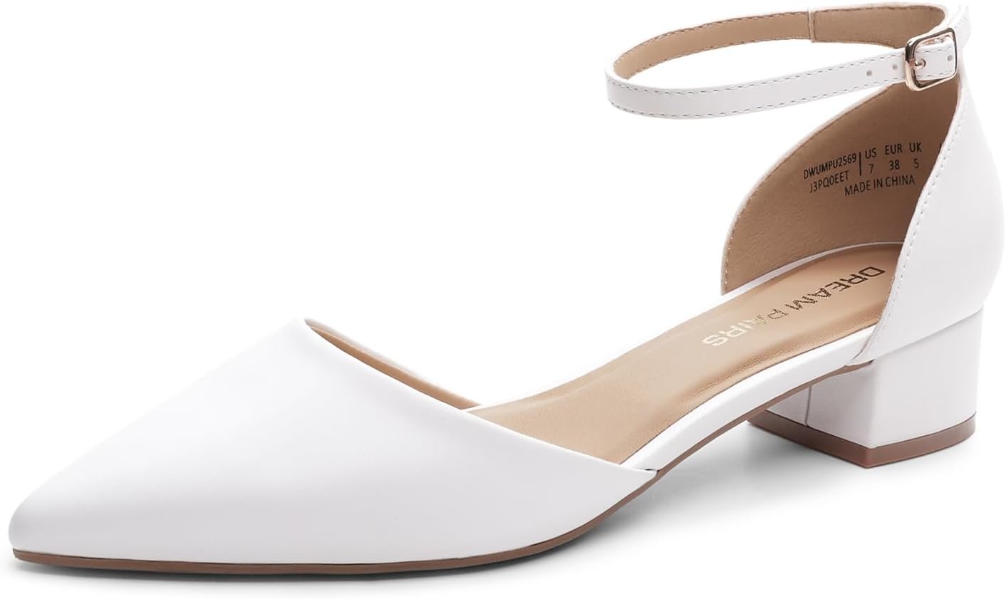 DREAM PAIRS Women’s Dress Shoes Low Heel Pumps Closed Pointed Toe Comfort Casual D’Orsay Flats Ankle Strap