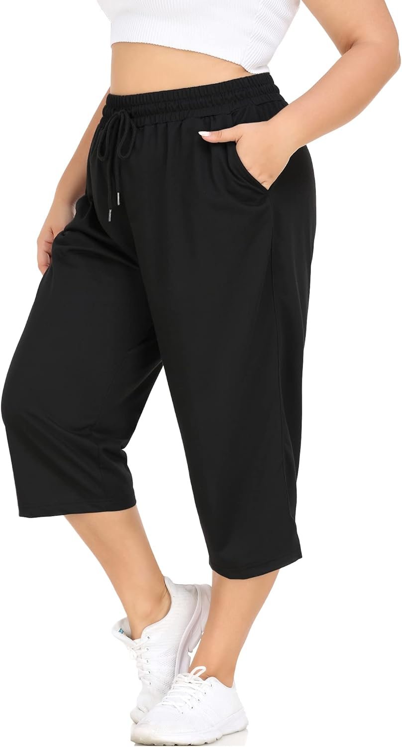 FOREYOND Plus Size Capri Pants for Women Loose Fit Yoga Pants with Pockets Workout Activewear Sweatpants