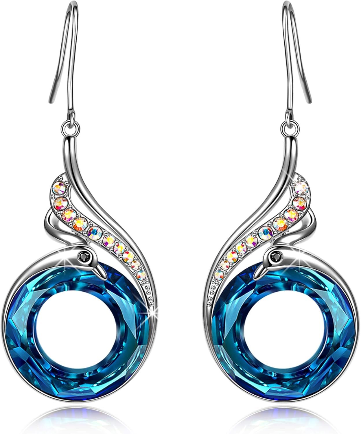 Kate Lynn “Rise From the Ashes” Phoenix Earrings, Sterling Silver Dangle Earrings with Crystals from Austria, Birthday Gift with Jewelry Box, Symbol of Luck and Renewal