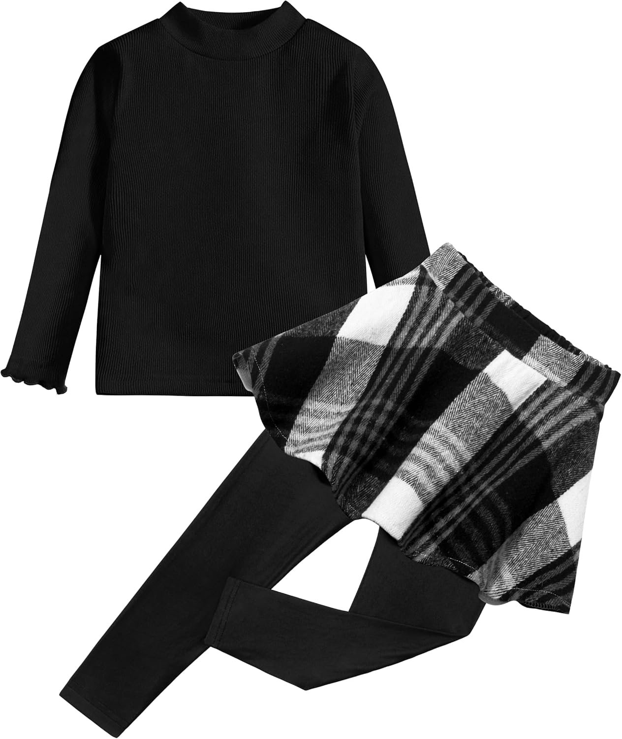 Little Girls Clothes 2Pcs Long Sleeve Solid Knit Shirts and Plaid Skirt Leggings Pants Set Fall Winter Outfit 3-7Y