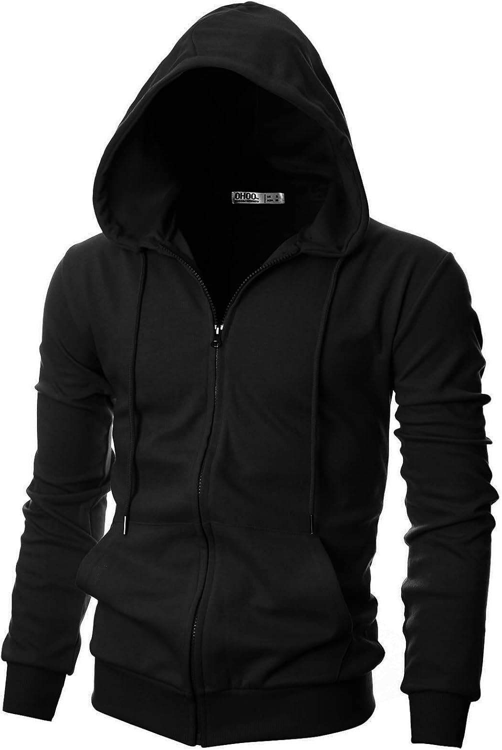 Ohoo Men’s Zip Up Hoodie Lightweight Sweatshirt Full Zip Hooded Jacket