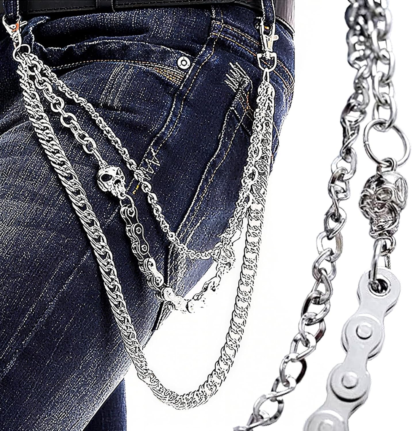 Pants Chain for Men Women,Biker Skull Chain Wallet,Long Cool EMO Punk Trousers Pocket Belt Key Chains for Hip Hop Rock Jean Gothic
