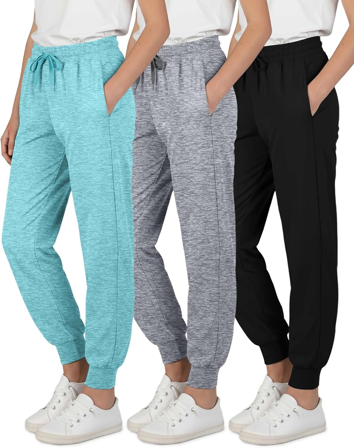 Real Essentials 3 Pack: Girls’ Dry-Fit Jogger Sweatpants – Kids Teens Running Athletic Pants with Pockets (Sizes: 4-16)