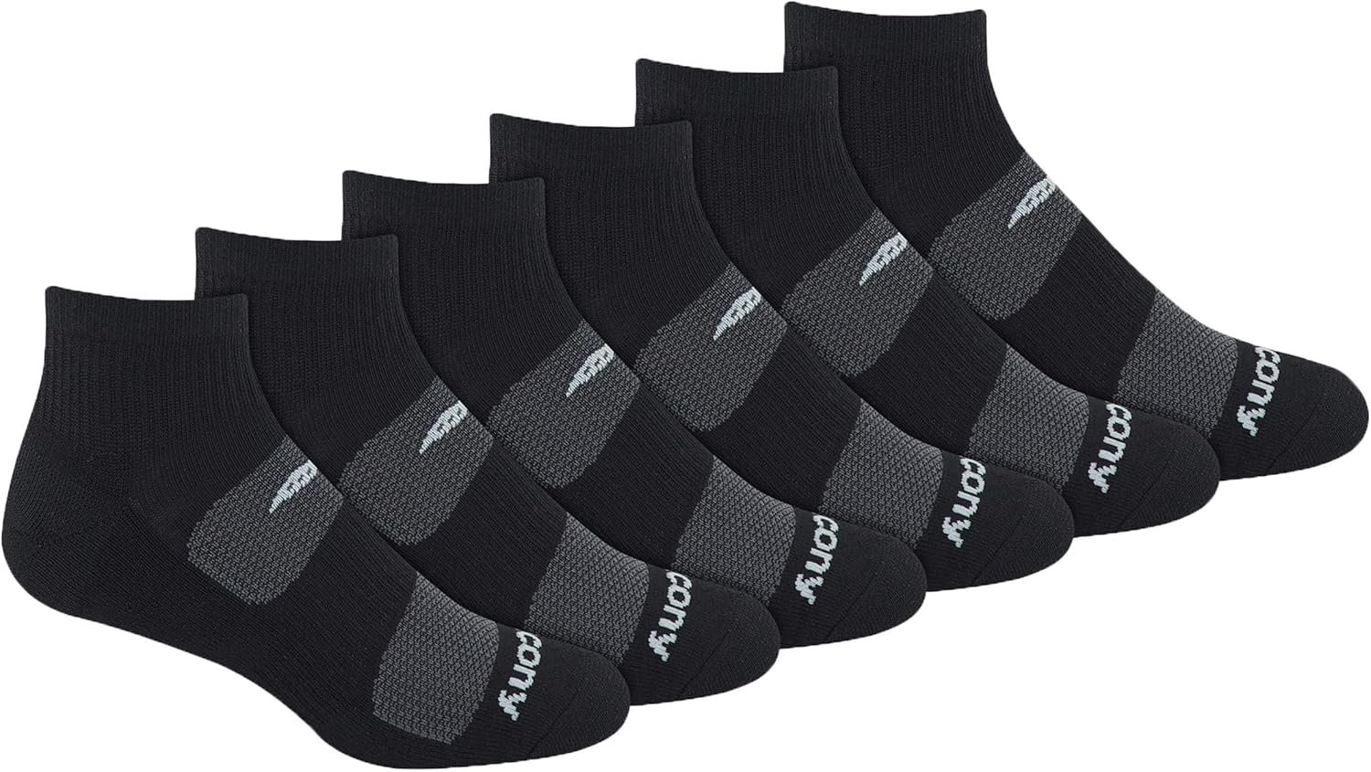 Saucony Men’s RunDry Mesh Ventilating Comfort Fit Performance Quarter Socks (6, 12 Pairs)