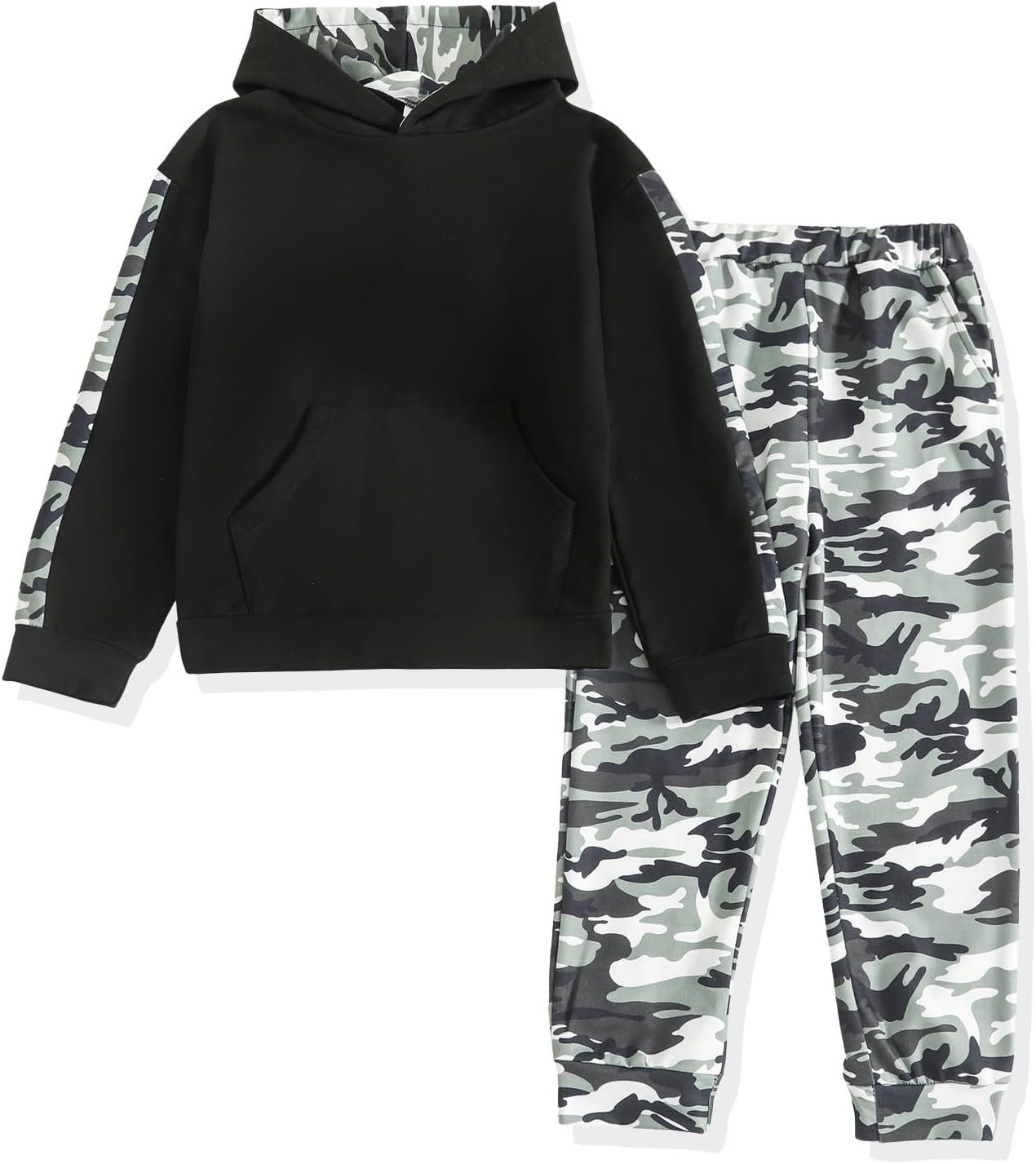 Toddler Boy Clothes Long Sleeve Hoodie Sweatsuits Tops and Pants Boys Fall Winter Color Block Outfits Set 5-12 Years