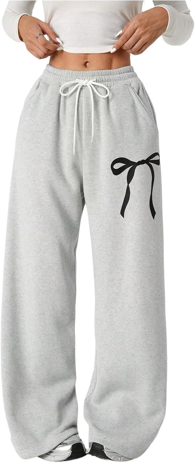 Verdusa Girl’s Bowknot Baggy Sweatpants Lightweight Straight Leg Athletic Pants with Pockets