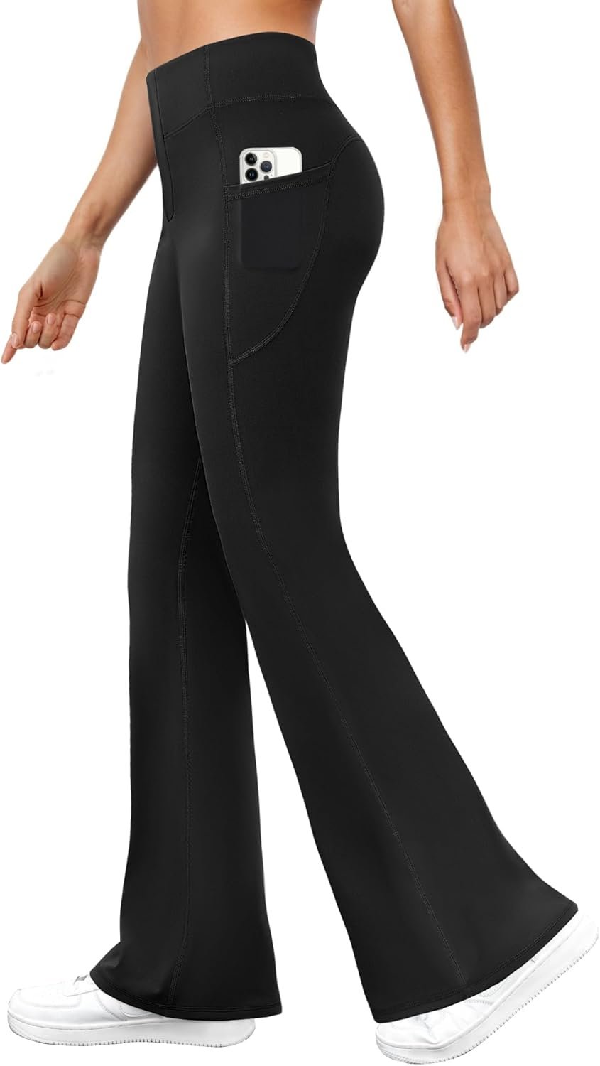 Womens Yoga Pants with Pockets High Waisted Flare Leggings Bell Bottom Tummy Control Workout Bootcut Leggings