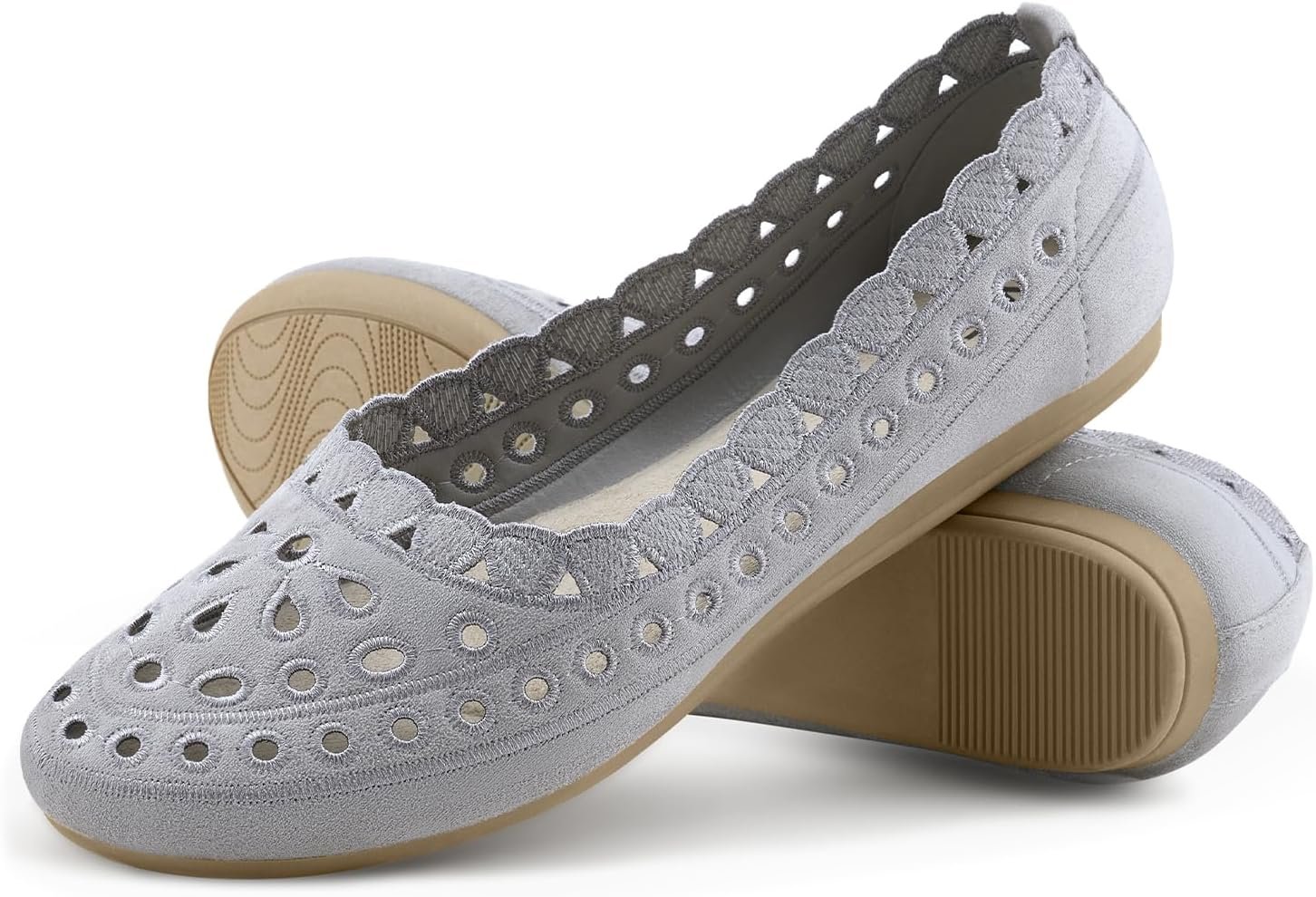 ZURIN Women’s Floral Ballet Flats Round Toe Flat Comfortable Dressy Black Beige Flat Dress Shoes Suede Microfiber Slip on Mesh Flats